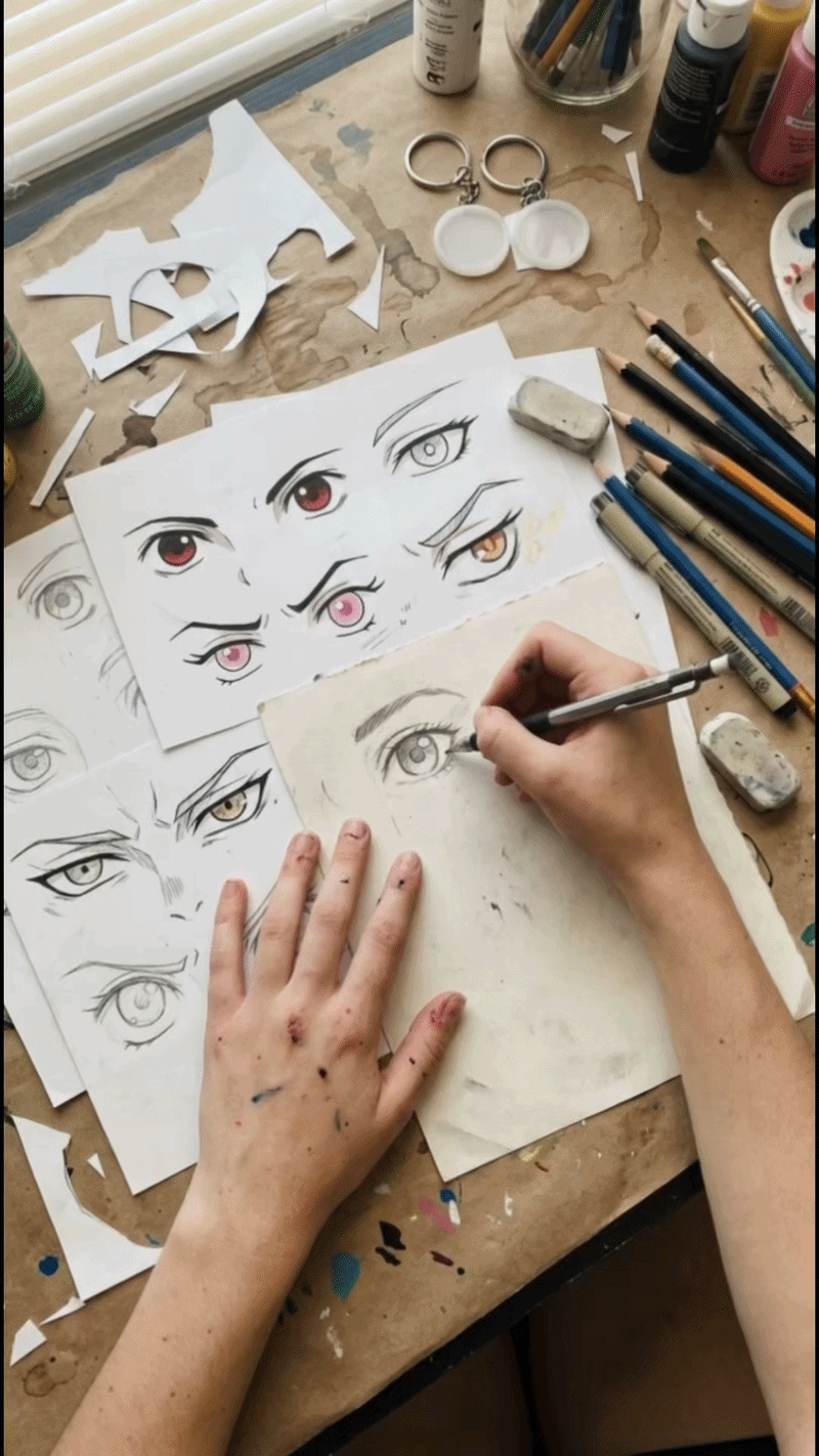 Inspired by anime emotions, I create and assemble each keychain by hand, one piece at a time.